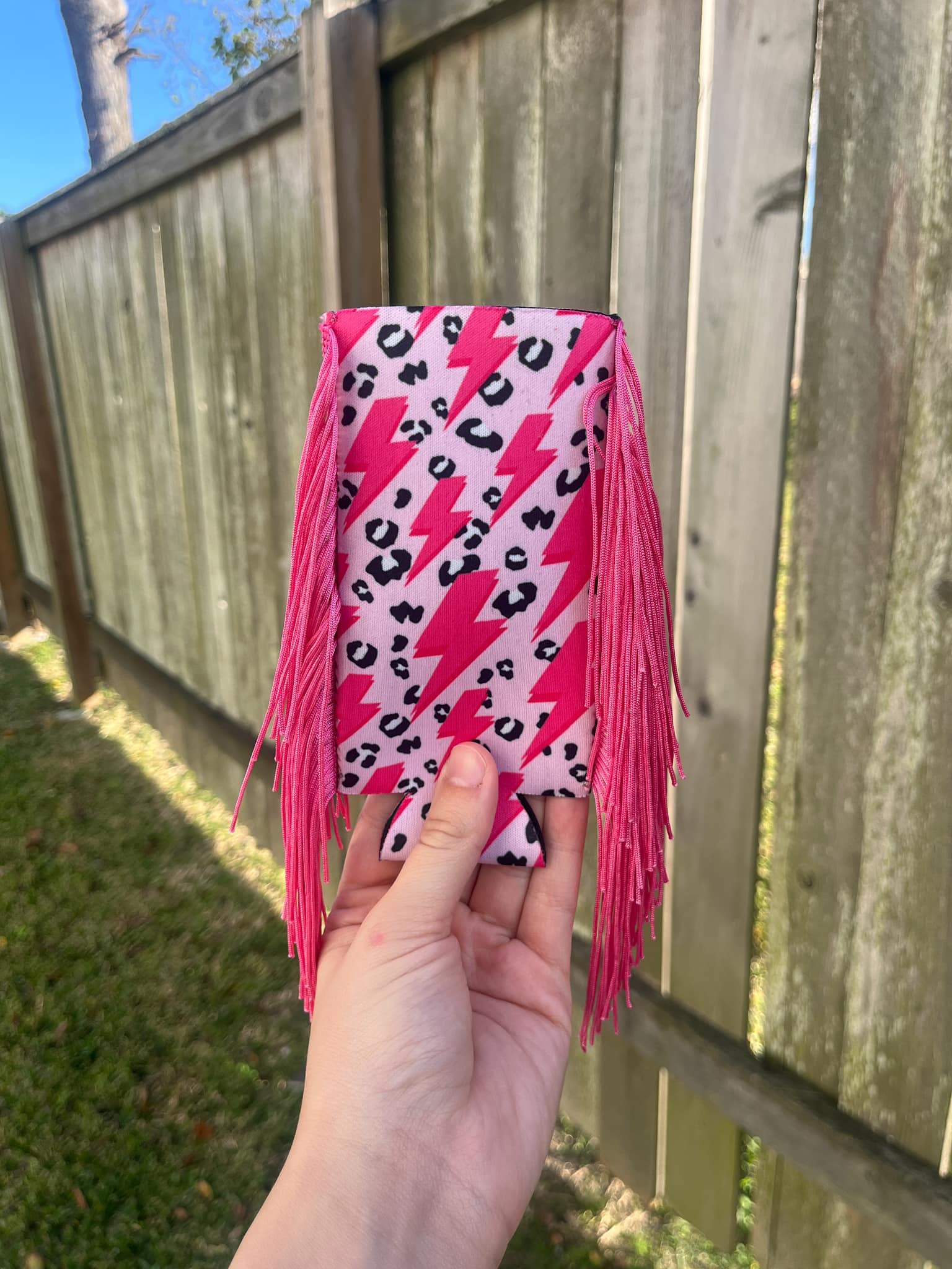 Add a burst of fun to your drink with the Tall Hot Pink Lightning Boujee Koozie. Its vibrant hot pink color and striking lightning bolt design make it a bold statement piece, while keeping your beverage cool and your hands dry. Perfect for parties or everyday sips, this koozie brings playful energy wherever you take it.